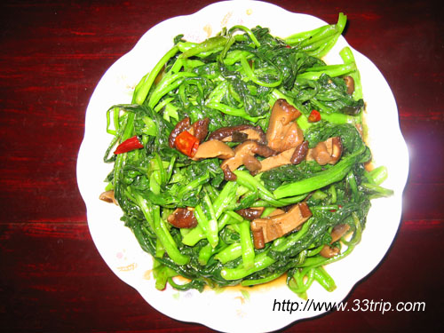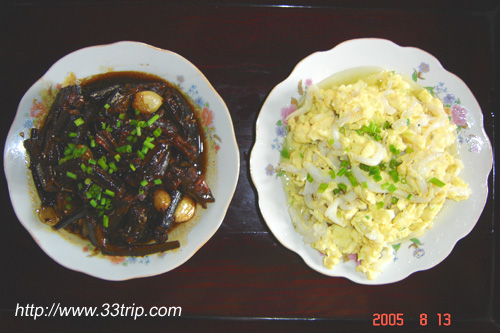 一些无公害时令蔬菜(香菇青菜、炒马兰头、小竹笋炒蚕豆) | ||